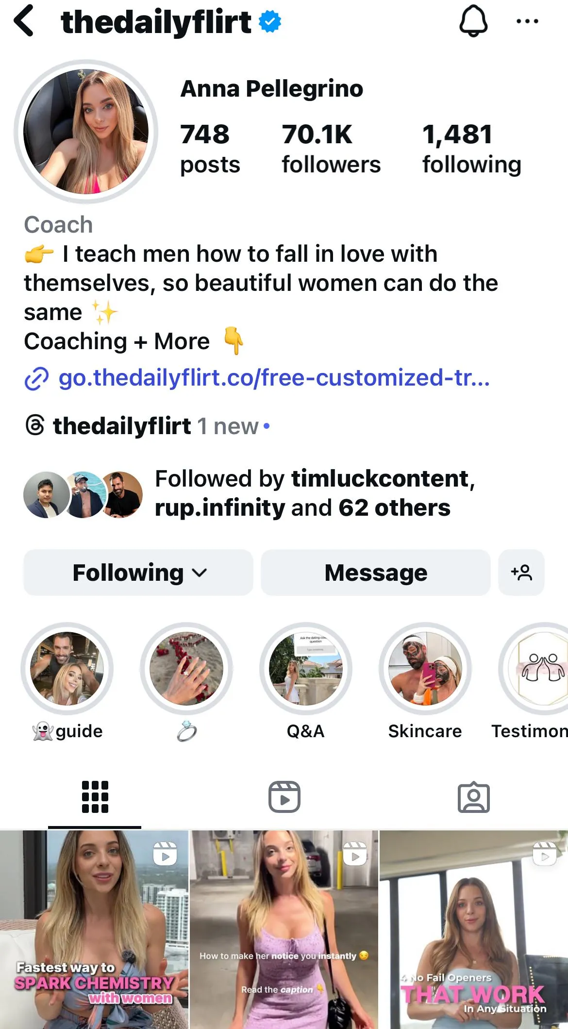 We also grew @TheDailyFlirt from 50K to 70K followers by turning dating advice into viral, conversion-driven content.